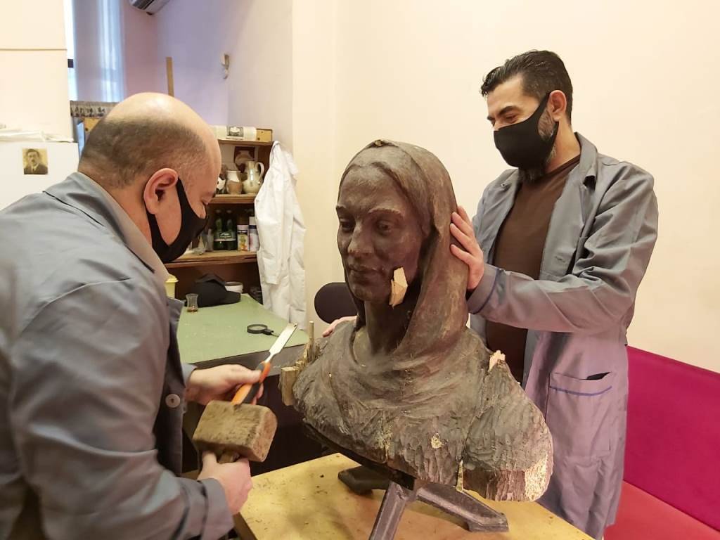 Muzey Sərvətləri və Xatirə Əşyalarının Elmi Bərpa Mərkəzinə Azərbaycan Milli İncəsənət Muzeyindən daxil olan “Azərbaycanlı qadın” adlı eksponat üzərində aparılan bərpa
